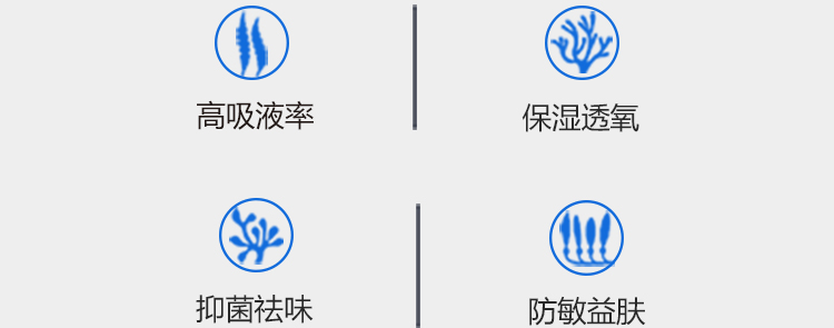 以高吸水海藻纖維作為衛(wèi)生巾的吸收材料,可以實(shí)現(xiàn)對經(jīng)血的快速吸收。海藻纖維優(yōu)異的天然抑菌性能和保濕透氧性能更能呵護(hù)女性經(jīng)期的身體健康。